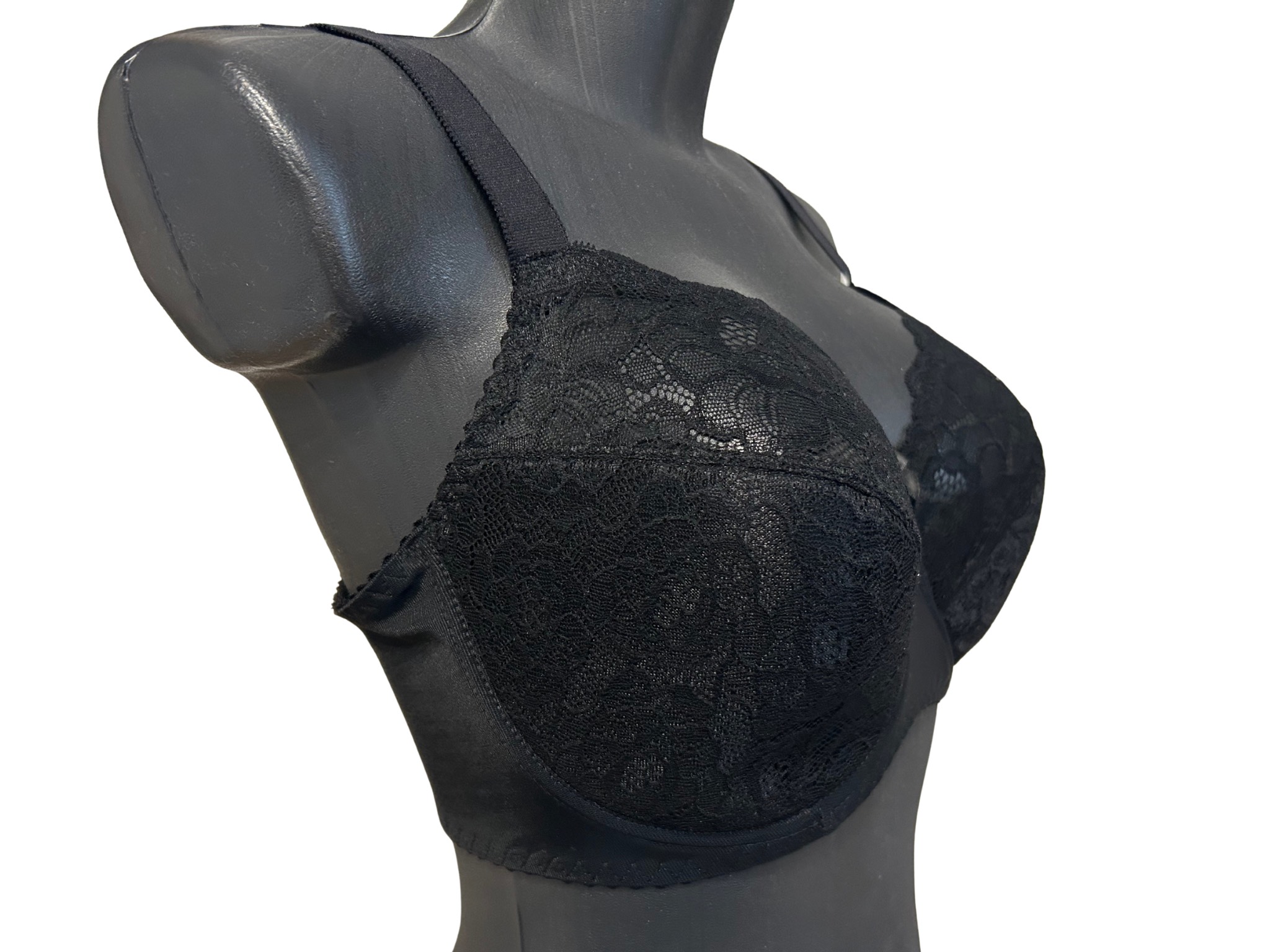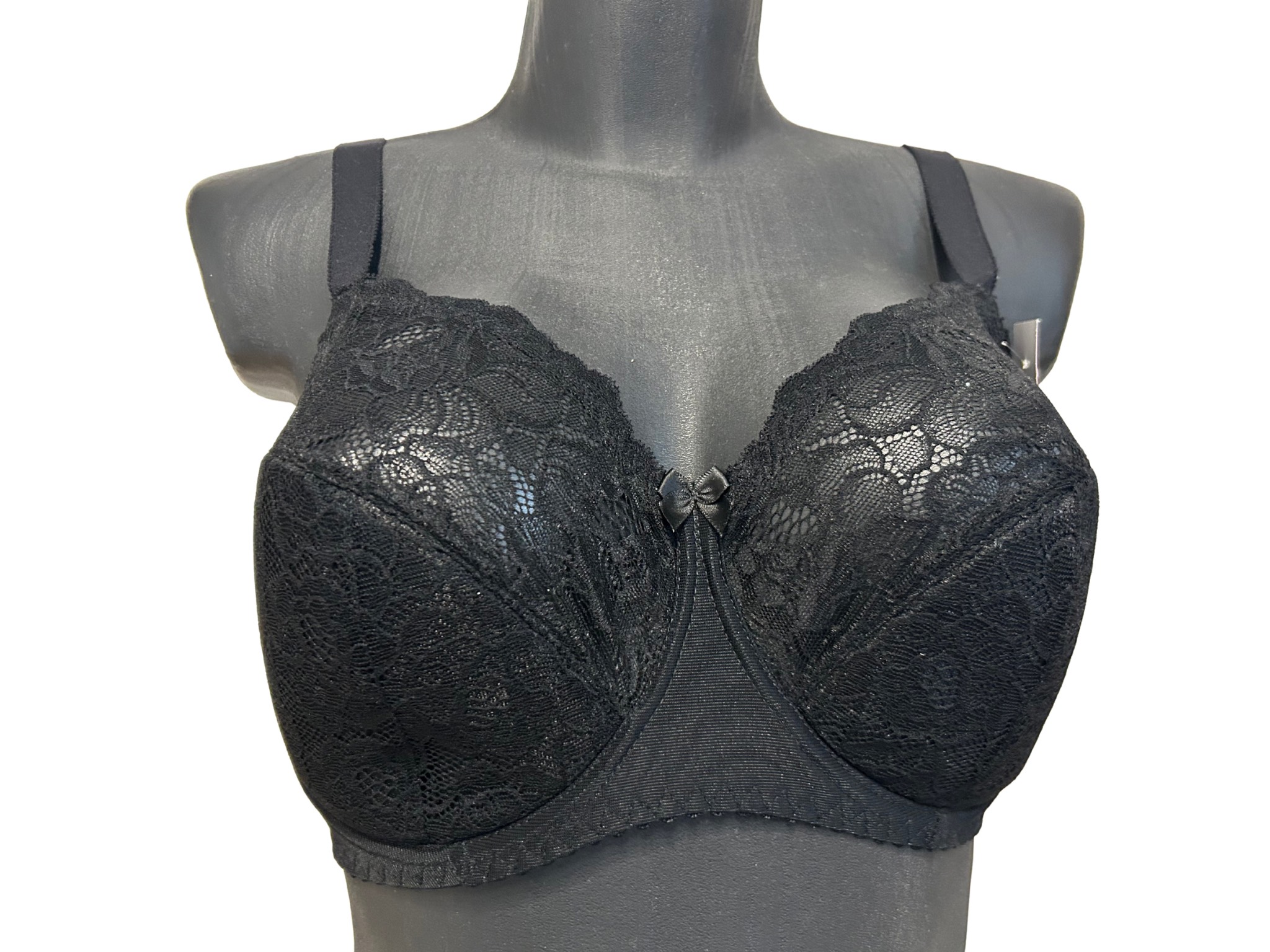 Biustonosz koronkowy na miseczkach z gładkim szerokim zapięciem pod biustem. Ramiączka szerokie, doszyte. Biustonosz wysokiej jakości, firmy Lor, doskonale podtrzymuje duży biust.