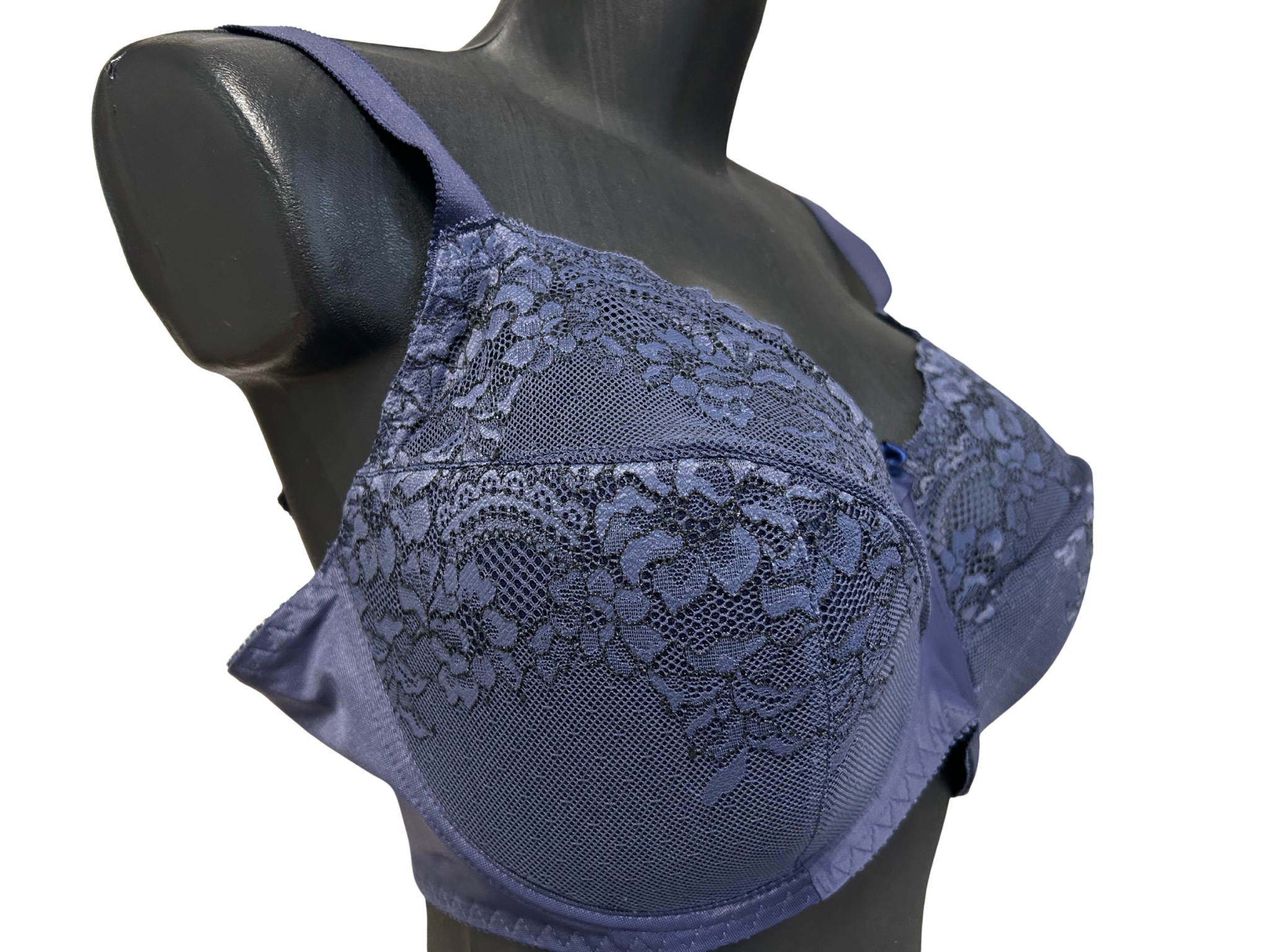 Biustonosz koronkowy na miseczkach z gładkim szerokim zapięciem pod biustem. Ramiączka szerokie, doszyte. Biustonosz wysokiej jakości, firmy Lor, doskonale podtrzymuje duży biust.