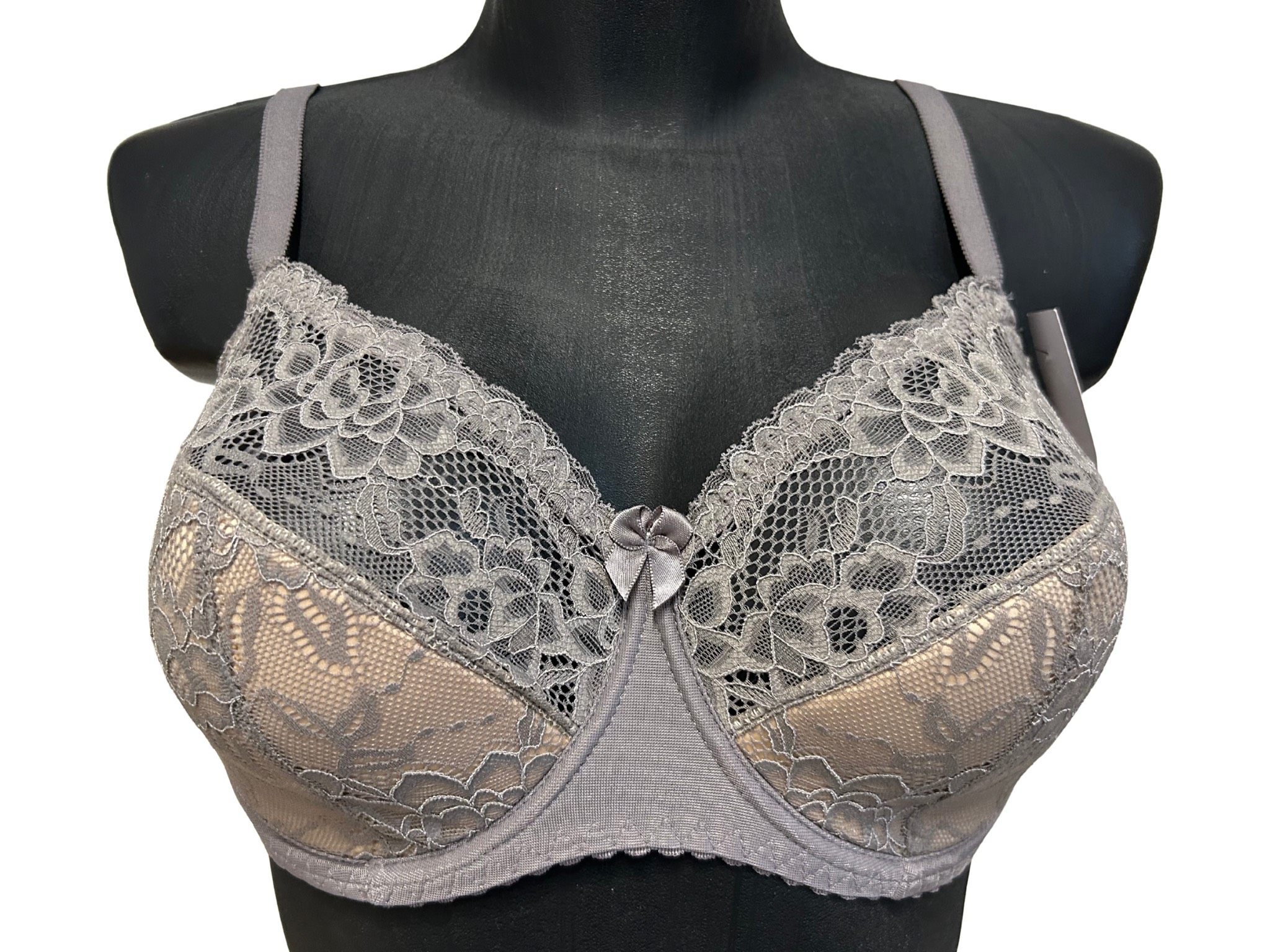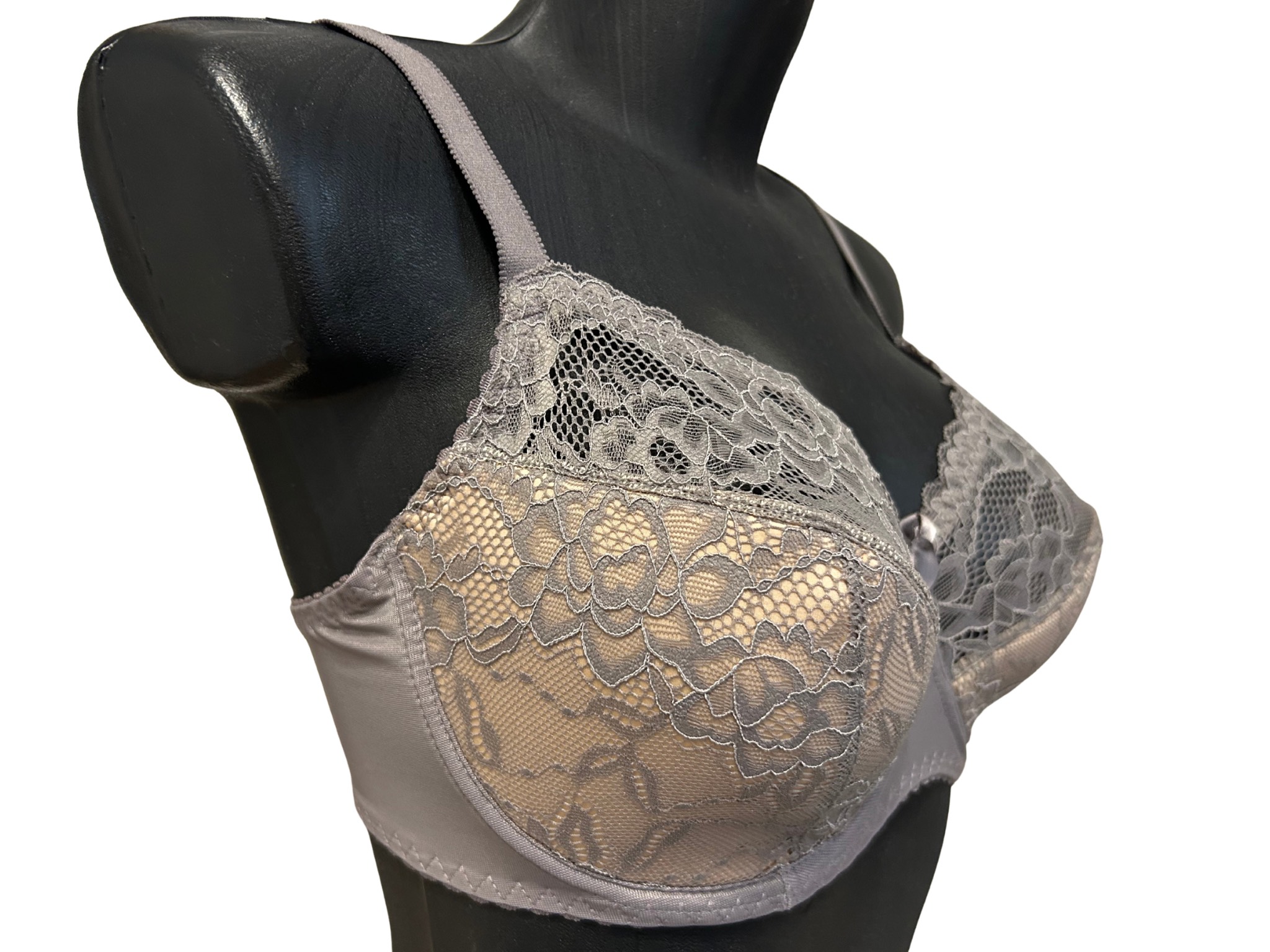 Biustonosz koronkowy na miseczkach z gładkim szerokim zapięciem pod biustem. Ramiączka szerokie, doszyte. Biustonosz wysokiej jakości, firmy Lor, doskonale podtrzymuje duży biust.