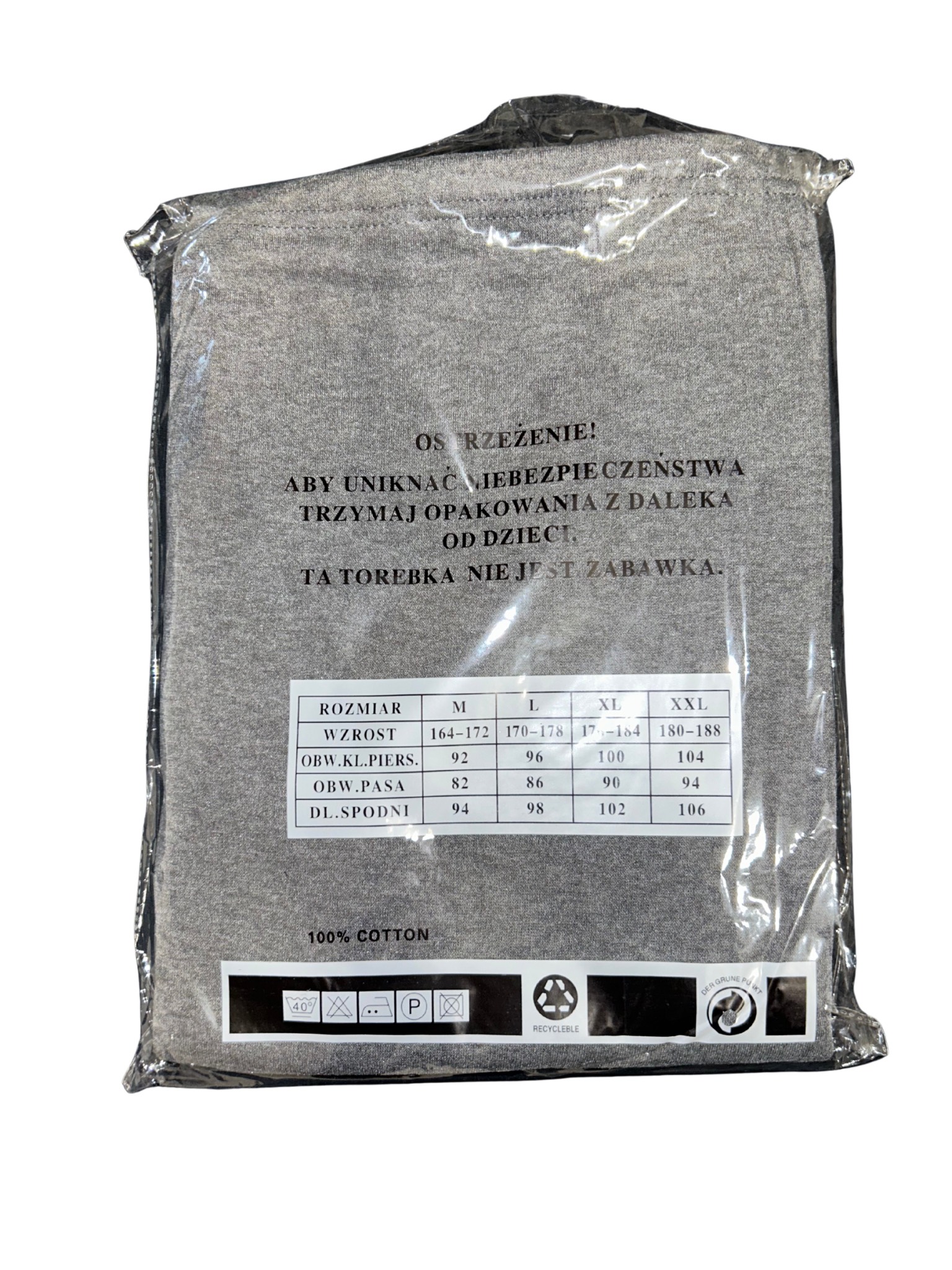 Rozmiar XL: wzrost:176-184, obwód pasa:90, długość spodni:102.
