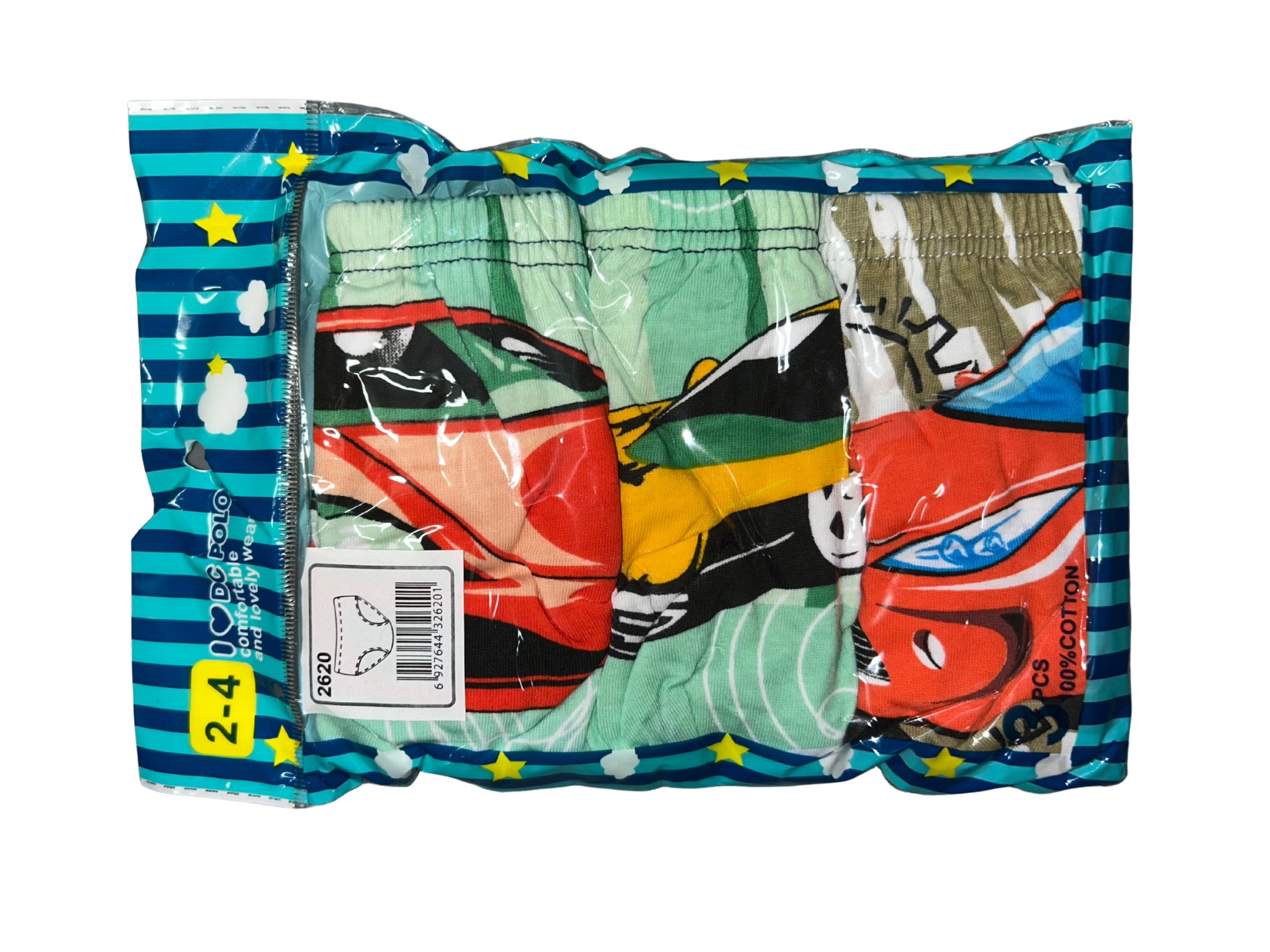 Pakowane po 3 sztuki w komplecie. Delikatne szerokie gumki w pasie. 100% bawełna
