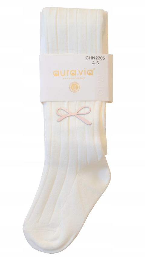 Śliczne rajstopki uroczo ozdobione kokardką.