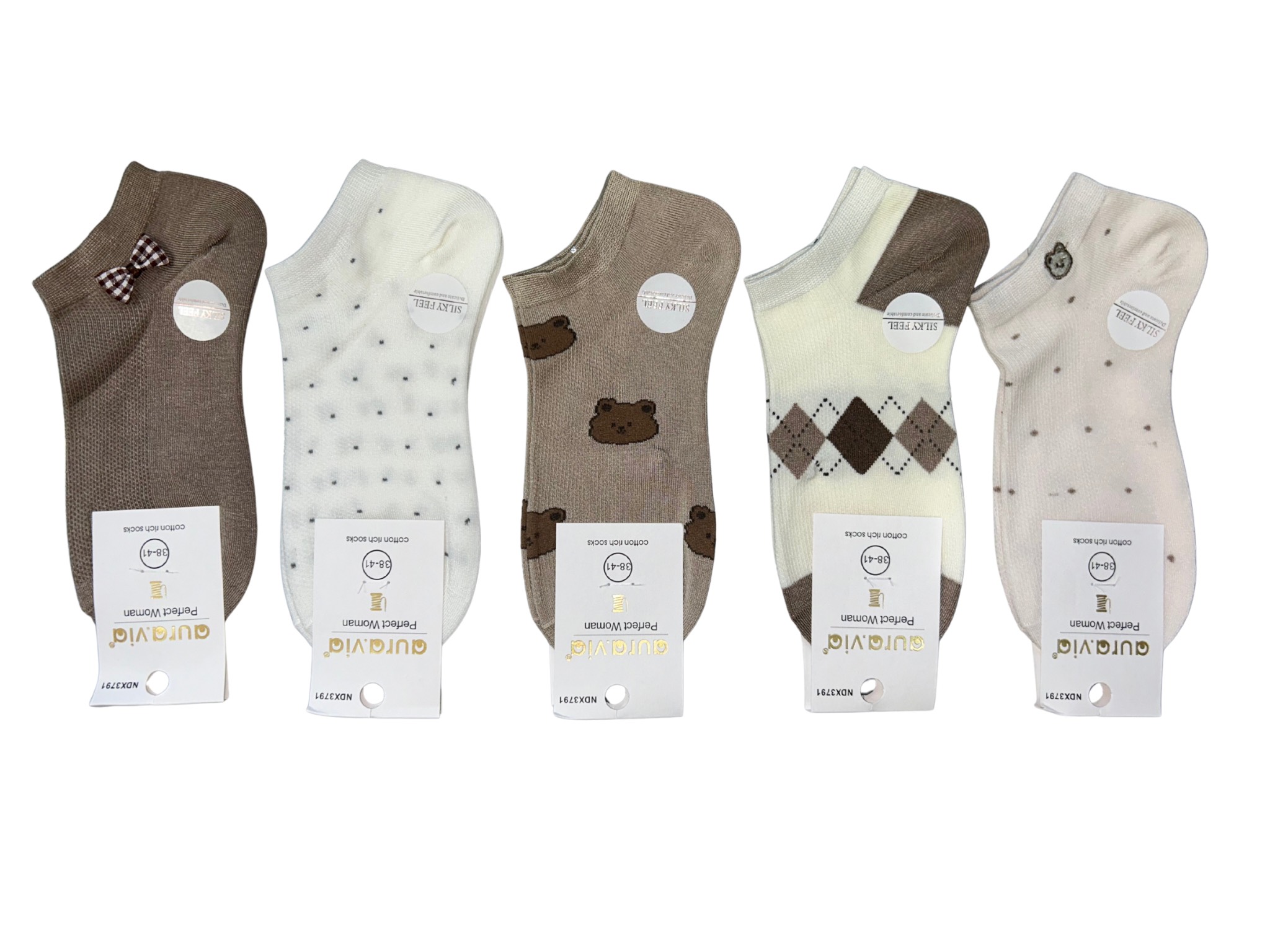 Skarpetki Damskie bawełniane stopki zestaw 5 par r. 35-38/38-41 Aura.via