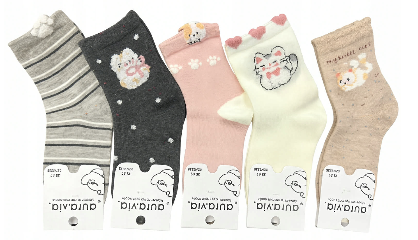❤️ Urocze skarpetki dziewczęce firmy Aura.Via to połączenie stylu, wygody i jakości, stworzone z myślą o małych księżniczkach. W każdym zestawie znajduje się 5 par skarpetek w pięknych, kolorowych wzorach, które wywołują uśmiech i dodają radości każdego dnia.