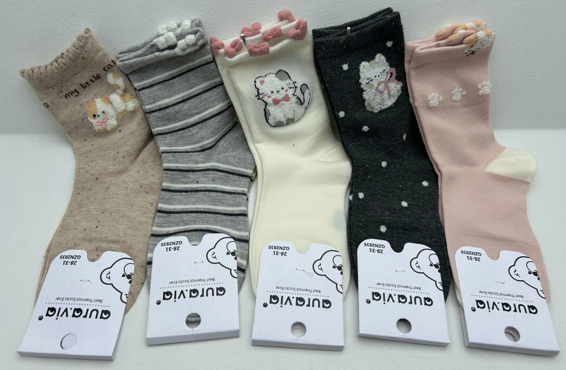 Skarpetki dziewczęce, skarpety bawelniane 5 par 24-27/28-31/32-35 Aura.via