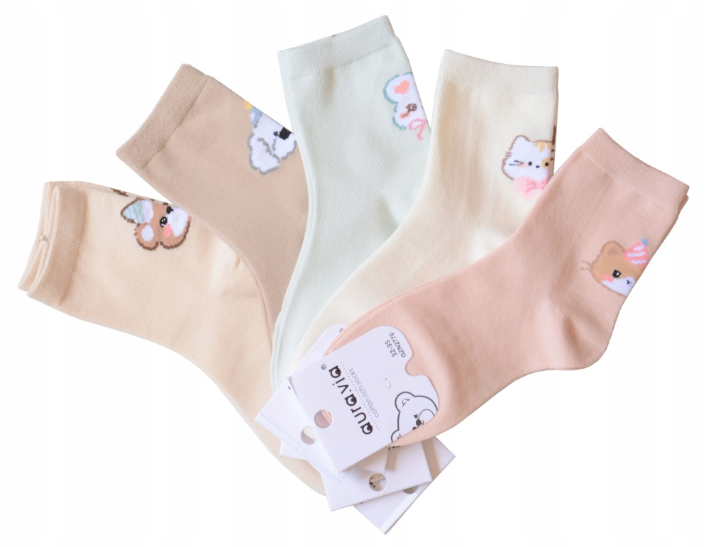 Skarpetki dziewczęce, skarpety bawelniane 5 par 24-27/28-31/32-35 Aura.via