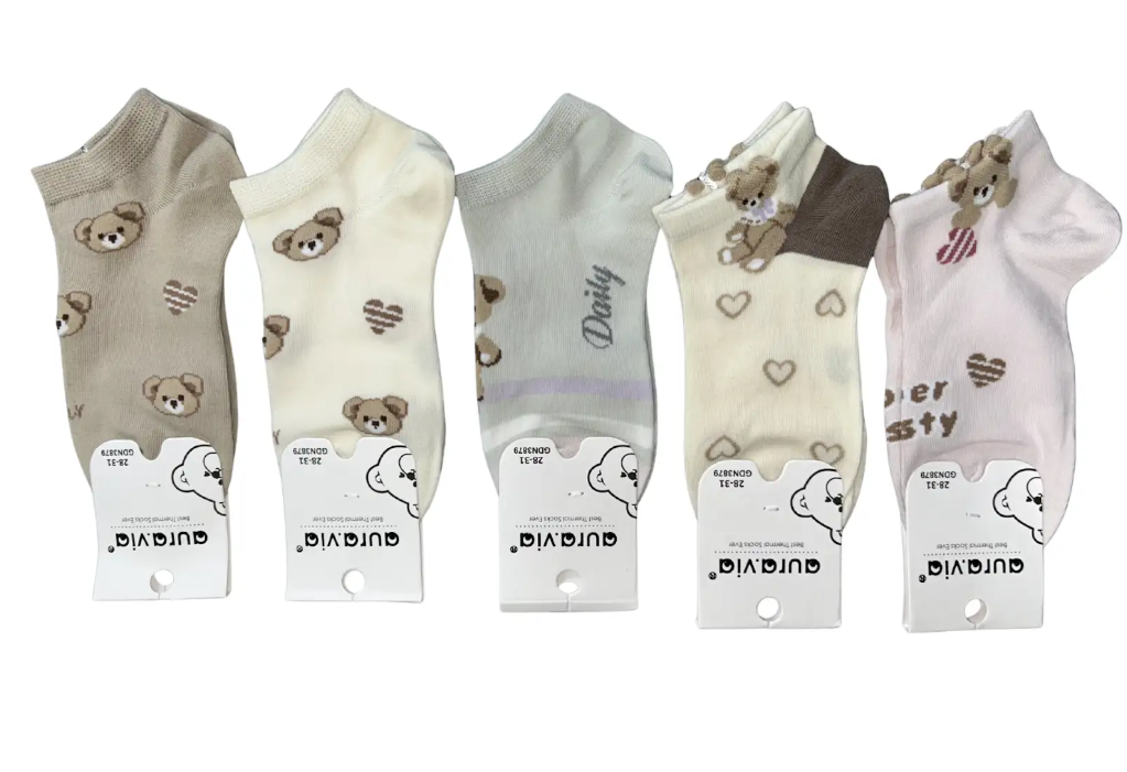 Urocze skarpetki dziewczęce firmy Aura.Via to połączenie stylu, wygody i jakości, stworzone z myślą o małych księżniczkach. W każdym zestawie znajduje się 5 par skarpetek w pięknych, kolorowych wzorach, które wywołują uśmiech i dodają radości każdego dnia. Wykonane z bawełny (85%) z dodatkiem poliamidu i elastanu, są niezwykle miękkie, elastyczne i delikatne dla skóry, zapewniając komfort noszenia przez cały dzień. Doskonale dopasowują się do stopy dziecka, nie uciskają i pozwalają skórze oddychać. Dostępne w rozmiarach 28–31 / 32–35, świetnie sprawdzą się zarówno na co dzień – do szkoły, przedszkola czy zabawy, jak i na specjalne okazje.Cechy produktu: