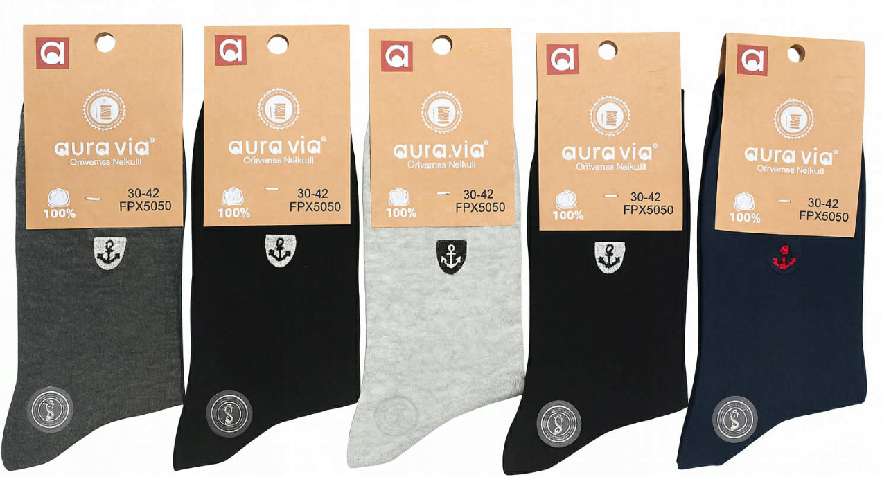 ✅ Zestaw 5 par klasycznych skarpetek męskich Aura.Via to idealny wybór dla mężczyzn ceniących komfort, jakość i elegancję każdego dnia. Skarpetki wykonane są z bawełny z dodatkiem elastanu i poliamidu, dzięki czemu są miękkie, elastyczne i trwałe.