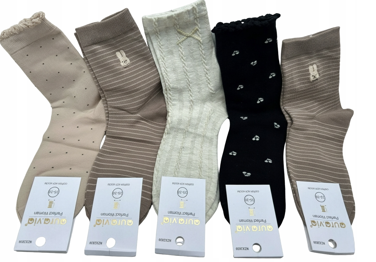 Skarpetki Damskie bawełniane kolory 5 par rozmiar 35-38/38-41 Aura.via